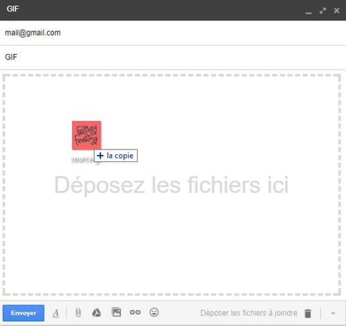 Si vous voulez que votre GIF apparaisse dans le corps de votre mail, vous pouvez tout simplement faire un glissé déposé à l’intérieur de celui-ci :