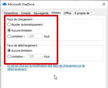 Ensuite dans l’onglet réseau vous pouvez définir le débit.
