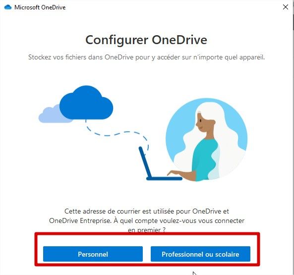 Pour ceux qui ont à la fois un compte OneDrive personnel et un compte OneDrive Entreprise vous devez choisir le compte auquel vous voulez vous connecter.