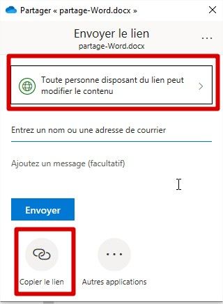 La force de OneDrive c’est aussi de pouvoir partager facilement des fichiers. C’est très pratique quand on travail sur un projet commun et que les fichiers sont trop lourd pour être envoyés par mail.