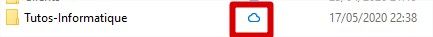- nuage bleu : le dossier ou fichier est disponible en ligne (il ne consomme pas d’espace disque)