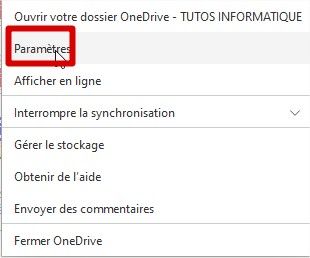Il faut aller dans les paramètres OneDrive en cliquant sur l’icône en bas à droite à coté de l’heure.